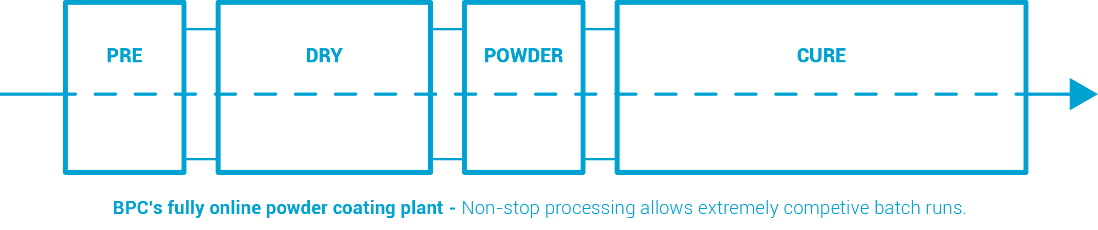 Berkshire Powder Coatings has invested heavily in cutting edge coating technology and utilises brand new on line powder coating systems installed in 2016, with the latest plant we have the facilities to offer high volume and high levels of quality and consistency to all of our products.